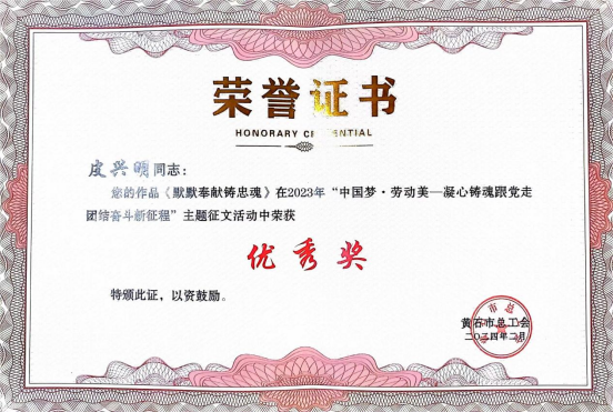 經(jīng)專(zhuān)家組評議,王家里水廠(chǎng)職工皮興明的“默默奉獻鑄忠魂”榮獲優(yōu)秀獎。