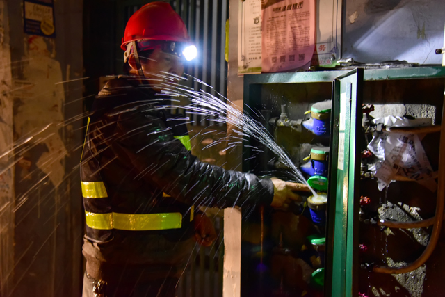 如圖:元月27日晚,營(yíng)銷公司搶修工人在代司里小區(qū)更換凍破的水表
