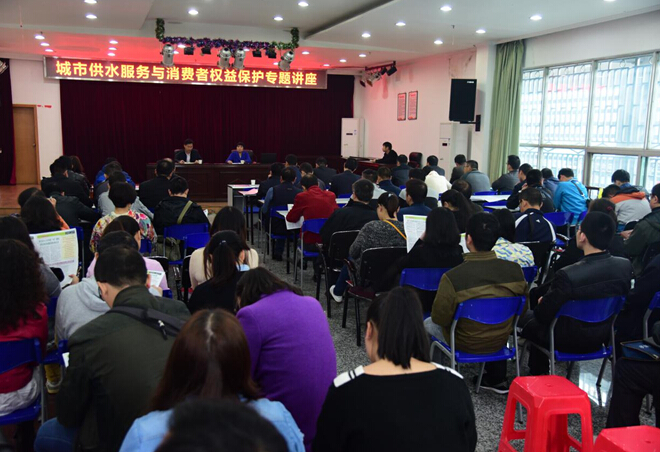 為進一步提高“兩學(xué)一做”學(xué)習(xí)教育實效性和針對性,10月27日下午,公司在二樓會議室舉辦“城市供水服務(wù)與消費者權(quán)益保護”專題講座,邀請市消費者委員會柯佳玲秘書長作專題宣講。公司黨委書記余曦同志主持講座,公司客服中心、經(jīng)營銷售公司、管網(wǎng)維護公司、市場開發(fā)辦、改水辦等窗口服務(wù)單位、部門的干部職工共80余人參加了此次講座。
