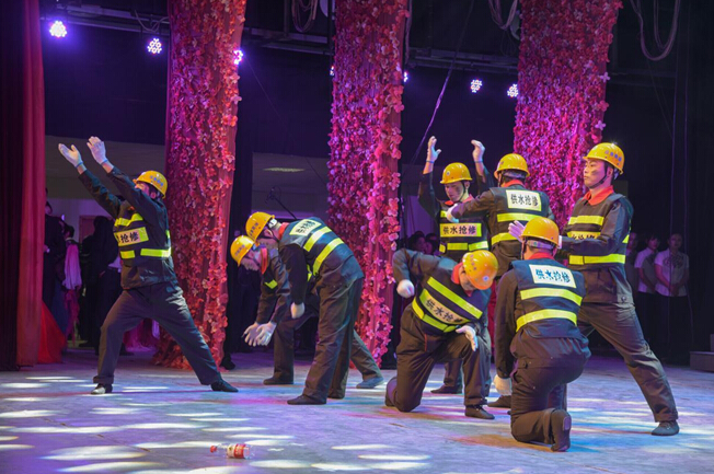 節(jié)目籌備期間,公司領導高度重視,三個節(jié)目均安排專人負責協調指導,要求公司工會的同志們挑選優(yōu)秀的青年組建演出隊伍。在公司各基層單位的積極配合下,挑選出的青年職工克服演出時間緊、任務重的困難,齊心協力排練好演出節(jié)目。比如水廠運行班的職工,剛剛下了夜班,顧不上休息,就投入到緊張排練中;有的抄表收費人員,為了工作和排練兩不耽誤,在寒冷的冬天早上6點鐘就出門抄表了……正是這樣一群不怕吃苦,勤奮認真的青年,在演出過程中激情表演,最終音詩畫《決戰(zhàn)冰雪》榮獲二等獎。