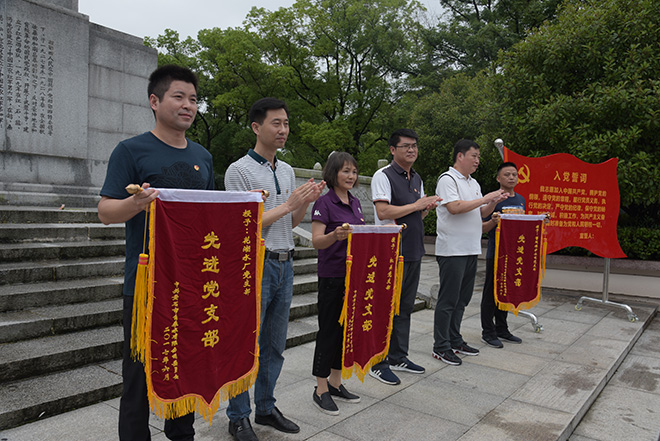 “我志愿加入中國(guó)共產(chǎn)黨……”一陣陣鏗鏘有力的宣誓聲在洪湖市湘卾西蘇區(qū)革命烈士陵園烈士紀(jì)念碑前回響,為慶祝中國(guó)共產(chǎn)黨建黨96周年,公司全體黨員170余人于6月17日、6月24日分批前往洪湖市開展“七.一”革命傳統(tǒng)教育活動(dòng)。在洪湖市革命烈士陵園紀(jì)念碑前,現(xiàn)場(chǎng)對(duì)公司2016-2017年度先進(jìn)黨支部、優(yōu)秀黨員及黨務(wù)工作者進(jìn)行了表彰,管維公司黨支部等3個(gè)黨支部分別榮獲“先進(jìn)黨支部”稱號(hào),黃先林等18名同志被授予“優(yōu)秀黨員”榮譽(yù)稱號(hào),紀(jì)云霞等4位同志被授予“優(yōu)秀黨務(wù)工作者”榮譽(yù)稱號(hào)。公司黨委書記、董事長(zhǎng)余曦對(duì)取得榮譽(yù)的集體、個(gè)人表示了肯定,勉勵(lì)大家以受表彰的先進(jìn)集體和個(gè)人為榜樣,不忘初心,充分發(fā)揚(yáng)黨組織戰(zhàn)斗堡壘作用及黨員先鋒模范作用,勇往直前、一如既往為公司供水工作作出努力。隨后,2017年新發(fā)展的18名預(yù)備黨員在烈士紀(jì)念碑前莊嚴(yán)地舉起右手宣誓、老黨員面對(duì)黨旗重溫了入黨誓詞,進(jìn)一步引導(dǎo)大家牢記黨員身份,強(qiáng)化黨員意識(shí)。表彰大會(huì)后,全體黨員跟隨園區(qū)講解員一起瞻仰革命烈士紀(jì)念館,傾聽講解員講述洪湖這塊紅色土地上英雄先烈們的革命事跡。