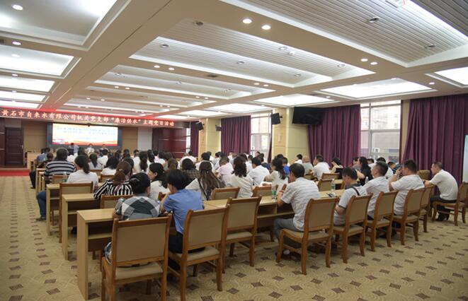 參觀結(jié)束后,公司機(jī)關(guān)黨支部在大冶檢察院會(huì)議室舉辦了“廉潔供水”主題黨日活動(dòng),黨員干部們重溫入黨誓詞,誦讀黨章,學(xué)習(xí)了《習(xí)近平談治國(guó)理政》等內(nèi)容,并結(jié)合自身和企業(yè)實(shí)際暢談了參觀警示教育后的心得體會(huì)。公司黨委書記、董事長(zhǎng)余曦作總結(jié)發(fā)言,他要求全體黨員干部要進(jìn)一步加大學(xué)習(xí)法律法規(guī)、黨規(guī)黨紀(jì)的力度,增強(qiáng)自律自醒意識(shí),反腐倡廉警鐘長(zhǎng)鳴。