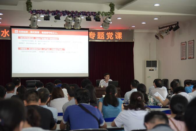 為進(jìn)一步加強黨員干部廉政教育,保障供水企業(yè)健康發(fā)展,6月15日,公司舉行了廉政教育專題黨課。公司全體中層干部,機關(guān)、營銷、工貿(mào)黨支部全體黨員共120余人參加了活動。