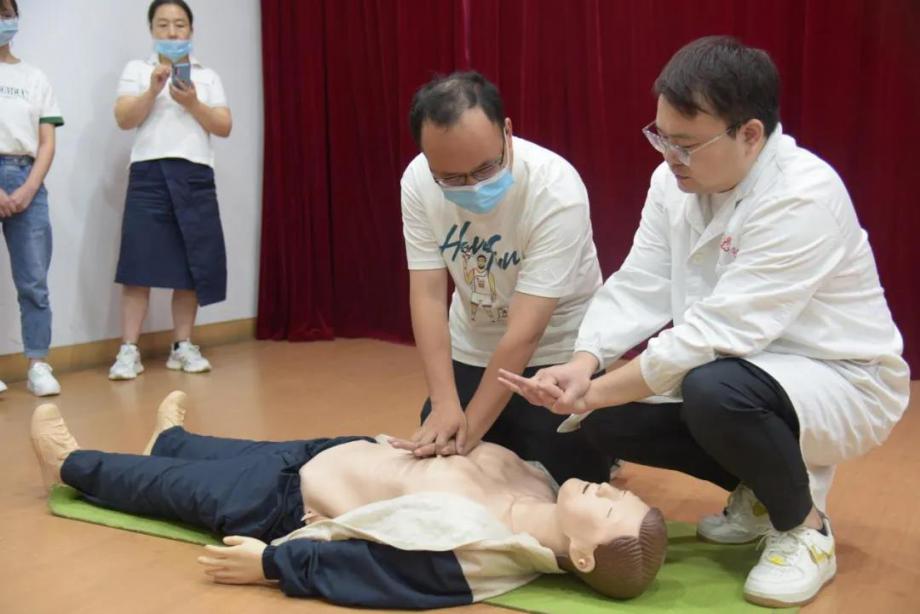 隨后,在職業(yè)健康安全教育培訓(xùn)中,市二醫(yī)院的主任醫(yī)師結(jié)合實(shí)際,給大家講解了防暑降溫知識、中暑急救等知識,并模擬演練心肺復(fù)蘇動(dòng)作,進(jìn)一步提高了職工安全防護(hù)、自救互救等能力。