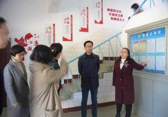 圖為市國(guó)資委、城發(fā)集團(tuán)領(lǐng)導(dǎo)實(shí)地參觀涼亭山水廠廉潔格言文化路、“清廉水務(wù)”文化墻(角)