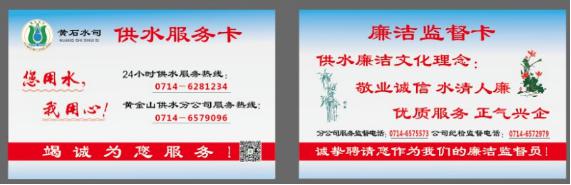 “您用水,我用心!誠摯聘請(qǐng)您作為我們的廉潔監(jiān)督員!我們竭盡所能為用戶安全用水保駕護(hù)航” 黃金山供水分公司紀(jì)檢委員葉翔主動(dòng)點(diǎn)對(duì)點(diǎn)上門,向供水區(qū)內(nèi)企業(yè)誠意遞上《供水服務(wù)廉潔監(jiān)督卡》。在優(yōu)化營商環(huán)境國家測評(píng)中,黃石獲得“用水指標(biāo)”考核優(yōu)秀等次,“用水費(fèi)用指標(biāo)”獲評(píng)滿分,成為全國最佳表現(xiàn)……,細(xì)細(xì)回想,這是從一場名為“廉潔優(yōu)質(zhì)服務(wù)”競賽活動(dòng)開始的。