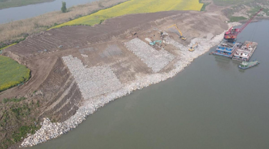 不遠(yuǎn)處,長(zhǎng)江中的取水頭部施工同樣熱火朝天。幾臺(tái)大型吊裝設(shè)備在江面作業(yè),挖掘機(jī)轟鳴,多名工人忙著安裝格賓石籠?!叭∷^部設(shè)置2個(gè)特定規(guī)格的取水喇叭管,中心設(shè)計(jì)高程為-4.9米?!惫ぷ魅藛T指著施工圖紙介紹,目前,水下清淤和岸邊修整已完成,正進(jìn)行格賓石籠安裝。