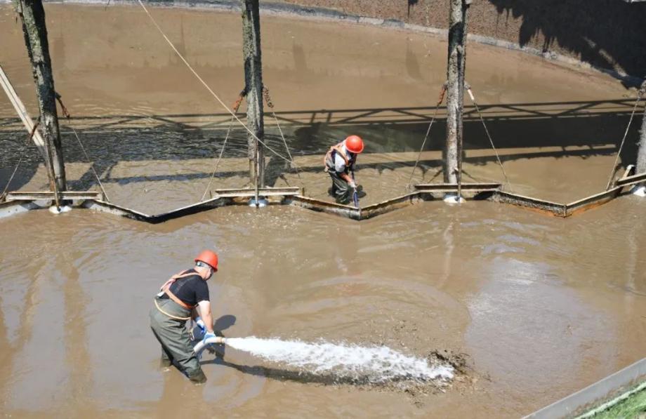 7 月下旬,青山湖污水廠拉響 “警報(bào)”。1 號二沉池刮泥機(jī)因連日高溫下長期高負(fù)荷運(yùn)轉(zhuǎn),刮泥板零部件扭曲變形、脫落。要知道,刮泥機(jī)一旦停擺,污水處理沉淀環(huán)節(jié)將陷入混亂,進(jìn)而影響整個(gè)工藝流程的穩(wěn)定運(yùn)行。為將對污水處理工藝的影響降到最低,市污水公司迅速行動(dòng),多次組織研討,精心優(yōu)化維修方案。在完成向上級報(bào)備,并采取降低進(jìn)水量、排水放空等預(yù)處理措施后,維修中心與青山湖廠部緊密配合。維修人員身著厚重防護(hù)裝備,毅然踏入池底。高溫下,他們分工明確,沖洗、檢測、拆卸、安裝等工序有條不紊地進(jìn)行著,專注修復(fù)更換刮泥機(jī)破損部位。經(jīng)過不懈努力,7 月 30 日,1 號二沉池恢復(fù)正常運(yùn)轉(zhuǎn)。