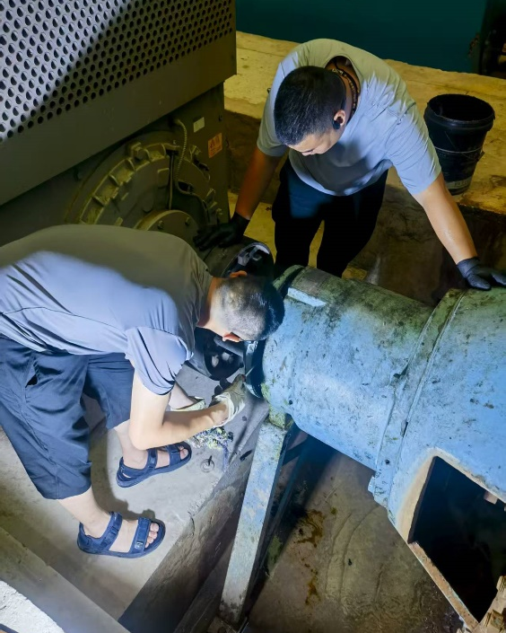 高溫下,露天設備表面溫度超 50℃,泵房內(nèi)悶熱難耐,駐派人員仍堅守“早發(fā)現(xiàn)、早處理”原則:觸摸電機測溫度、聆聽水泵辨異響、檢查管道看滲漏,將隱患消滅在萌芽狀態(tài),工裝常被汗水浸透。